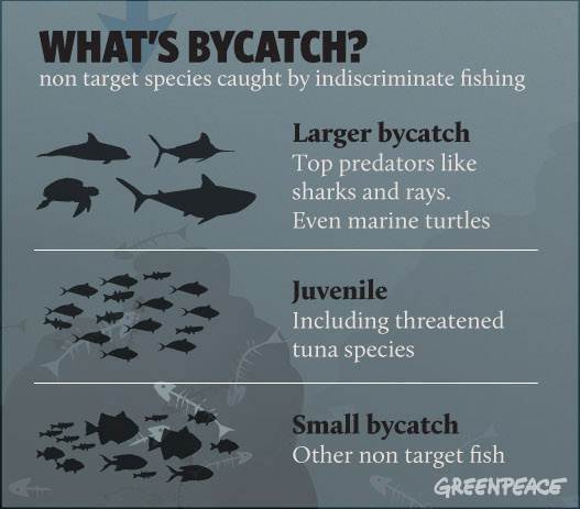 Allt som inte är tonfisk kastas tillbaka i havet. Men majoriteten är död eller svårt skadad. Hajar kan även få fenorna avskurna och sedan kastas de tillbaka levande i havet. Det får till följd att de endast kan simma åt ett håll, nämligen nedåt. Sakta men säkert plågas de till döds på havets botten.