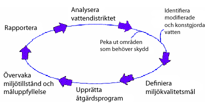 EU:s ramdirektiv för vatten, vattendirektivet, trädde i kraft år 2000 och är nu införlivat i svensk lagstiftning, främst i Vattenförvaltningsförordningen (SFS 2004:660)