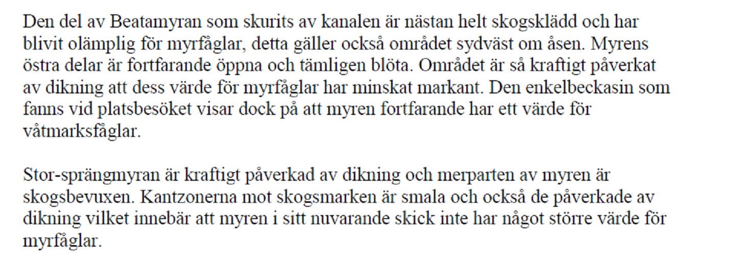 Lägger ut en kort text ur den det beslutsunderlag som ligger till grund för beviljandet av torvbrytning på Beatamyran m.fl.