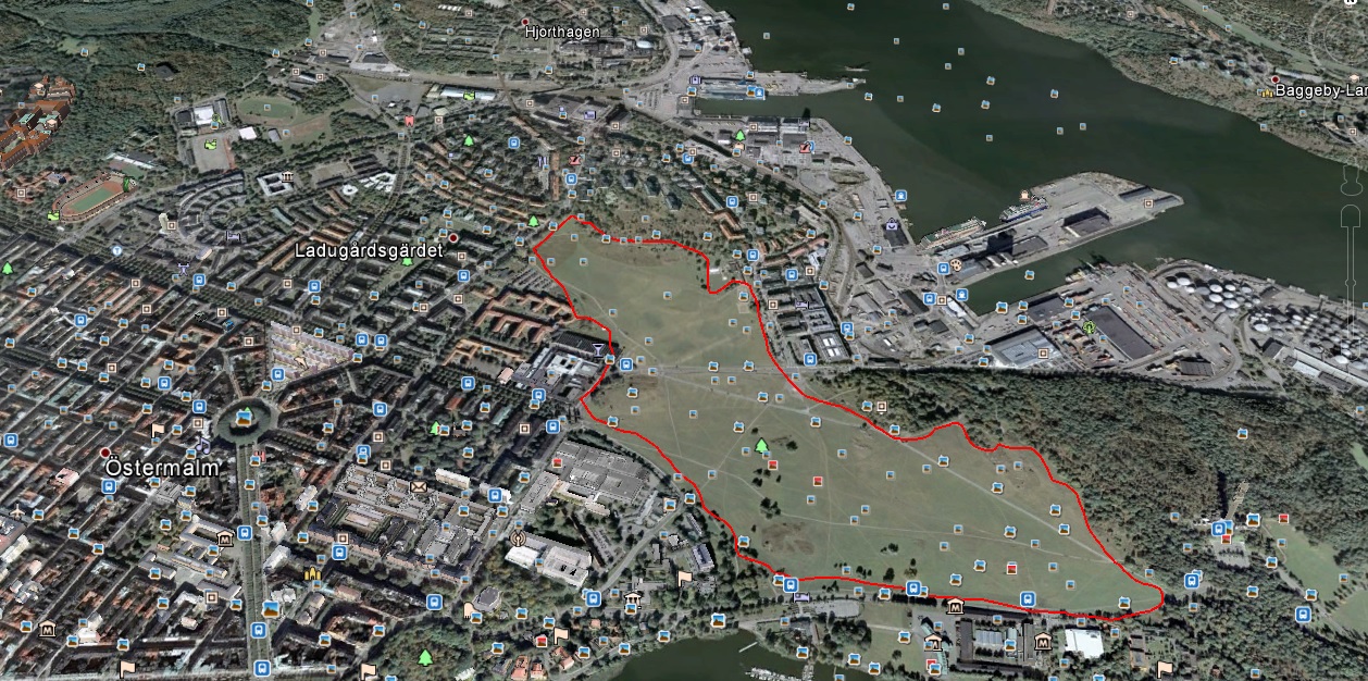 Här ser ni två inritade ytor, båda på omkring 60 hektar. OBS: Alla bilder går att klicka på. (förstoring). Jag har ritat med ett polygon-verktyg som hela tiden anger ytan för det man ritar.