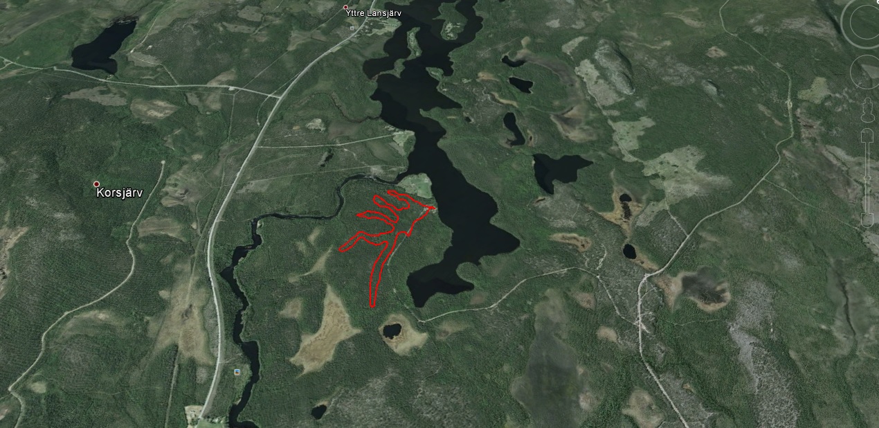 Nedan kommer en hel del kartbilder som är tagna från Google earth pro. Egentligen ett program som kostar en del, men det finns en testvecka som är gratis. De exempel som jag visar är inte på något sätt korrekt ritade om man tänker på terräng, små vattendrag, höjdmeter, fastighetsgränser eller annat man måste tänka på när man avverkar.