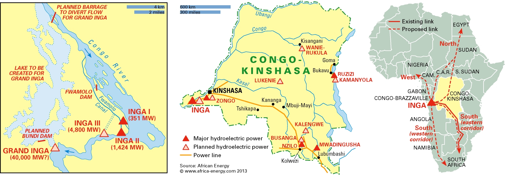 Grand Inga, the world’s largest hydropower scheme, is proposed for the Congo River in the Democratic Republic of Congo (DRC), one of Africa’s most politically volatile and corruption-plagued countries. The massive dam is part of a greater vision by the international economic community to develop a power grid across Africa that will spur the continent’s industrial economic development. But with a price tag of US$80 billion, concerns are growing that foreign companies will gain vast economic benefits from this mega-project, taking attention away from the development needs of Africa’s poor majority.