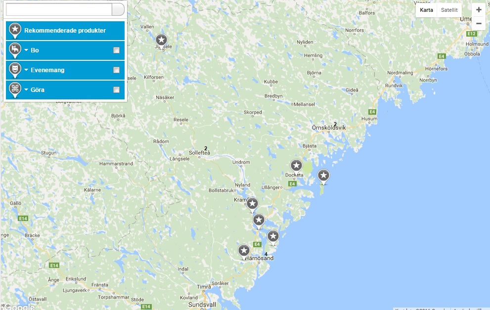 Kustområden söder om Örnsköldsvik nertill Härnösand.