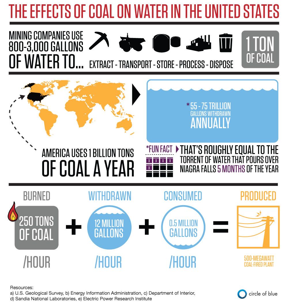 För att ge en liten förståelse för hur ofantligt mycket vatten det krävs för att underhålla gruvindustrin hittade jag denna illustration. Den gäller för kol, men mängden vatten är rätt lika för all brytning. Och detta vatten är ju bara ett lån, steg två är tillbaka i ån.