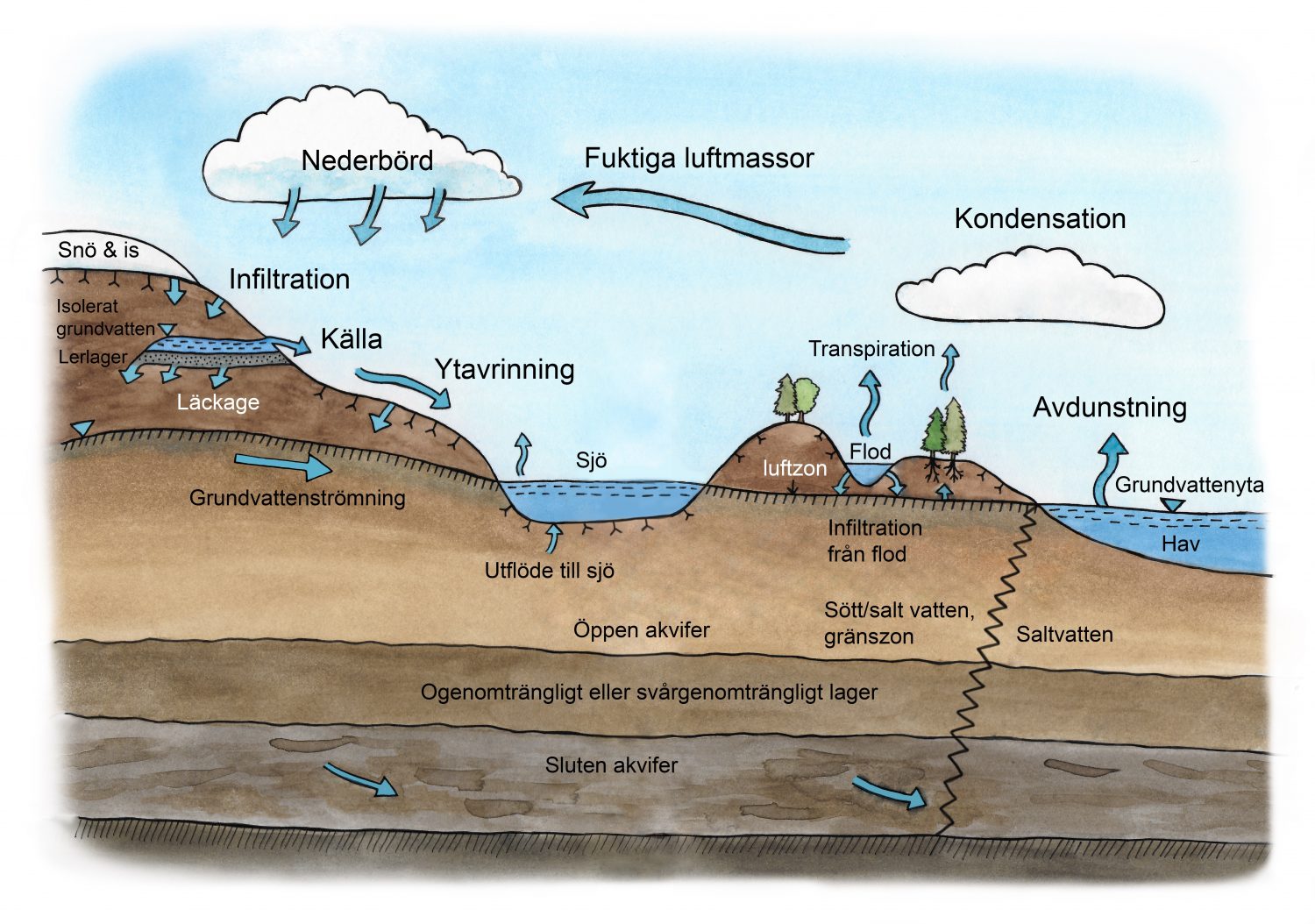Det är stillastående vatten som bildar grundvatten, rinnande vatten hamnar till slut i havet.