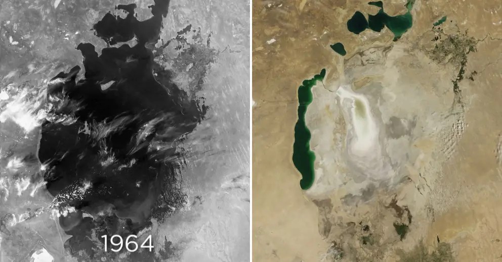 Är Aralsjön en engångsföreteelse eller är de uttorkade floderna i Europa även de orsakade av människor?